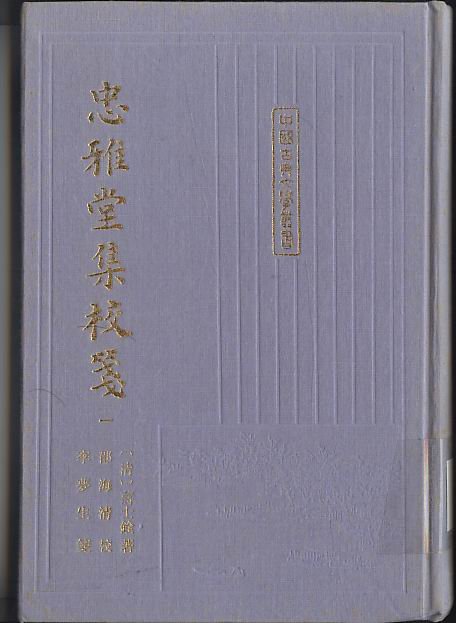 任真谨案:   本书初发布於读书中文网。   赵翼、袁枚与蒋士銓称有清诗三家。今已发赵翼於前,而闻袁枚亦有全集於超星矣。独唯心餘之作,虽见着录於读秀,而迄未见有出者。日前询瑚璉兄於石渠,云「忠雅堂集校笺4册尚无」,则斯作之发,固有其必矣。况於覃溪翁公,三诗人中唯於心餘交最厚,(参见附图)至其祭文,乃出公手(见年谱219页),而真迟迟未发者,固未敢有所怠慢也,实乃前发诸书部头之大,卷帙之多,而供源之未竟功尔。且既於扫完后第一时间发至中文网矣,应足以饗夫亟需者,亦堪以酬愚於公之私愿矣。   伏惟赵、袁、蒋三名家中,蒋於公最厚,次则赵,袁最浅。然心餘於公交游中,过世甚早,殆其往来,但於公年谱之前半段可寻迹尔。且记得似是在读公年谱时,见诸蒋氏於汪中似有嫌隙,岂蒋氏为人,白玉尚有餘玷也?(见年谱519页)然中学时读其孝感之文,固性情中人,或文人相轻之病,未能免尔,惜哉。虽然,恩师裕康先生於其《(增订)中国文学史初稿》曰:「士銓为人重情义,为世所称。」(页1104)夫「试玉要烧三日满」,岂虚言哉,愚於忠雅堂者,亦云。然则知其人,读其书,知人论世,或将有助於品鑑其性情之真,文思之致,固不必屑屑於白玉之微瑕也。况不唯先生,容甫於公亦有交情,则斯诸人之作,均是吾於研究翁公之时,所必需準备而熟稔者矣。   兹因一人之所需,而庇天下之寒士,亦可乐哉。此其将以兹书之功能发挥至极致,而心餘初作此书,固不独为后世之真,亦广被后世之学子也。而真一旦有幸,得览先生全书,敢据以藏私而不公诸同好者乎?唯真敢以先登者,无他,但进,吾往尔。嗟夫当今之世,专研蒋氏者伙颐,或其中会电脑、懂扫描之技者,独真尔,故真得擅其场,据其津,略不敢忘臆天下究蒋之士,其心胸,竟一无如真之好施者也,盖将窃恨无能早以共襄者尔。则斯书之发,其初不在真一人之私,而在诸大公之愿也。谨以此作,与诸同志,饗诸后学,并谢当初蒋、赵、翁诸先人悃恳力学之至,故华夏得有此遗产,亦使诸公见夫吾中华瓌瑋文化之承继,岂无人哉!民国九十五年七月二十一日夜任真自署於天母千虑一得斋之PC指键中。 (清)蒋士銓 着(民)邵海清 校、李梦生 笺:《忠雅堂集校笺》(精装25开全4册)(上海:上海古籍出版社《中国古典文学丛书》,1993年12月,第1版第1次印刷) 打包档所含档案及书目如下: 5288_忠雅堂集校笺(一).rar 5288_忠雅堂诗集.rar 5289_忠雅堂集校笺(二).rar 5289_忠雅堂诗集.rar 5290_忠雅堂词集.rar 5290_忠雅堂集校笺(三).rar 5290_忠雅堂诗集.rar 5291_忠雅堂文集.rar 5291_忠雅堂集校笺(四).rar