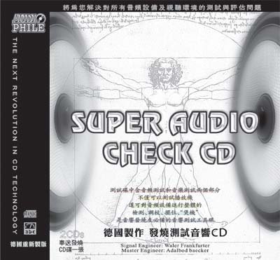 在眾多被奉为“试金石”的音响测试碟中,那良莠参差、鱼目混杂的“东郭郎”实难“试金”,充其量也就拿来磨磨刀吧!难怪眾多发烧友在测试硬体与购机时,会目迷五色无从下手。 现在,您将拥有一尊真正意义上的音频“试金石”。这张Super Audio Check CD将为您解决对所有音频设备及视听环境的测试与评估问题。 这张由德国着名信号录音师沃尔特·弗兰克福特(Waler Frankfurter)及母带录音师雅戈布·贝克(Adalbod baecker)录製完成,并在德国刻制母盘。此Super Audio Check CD採用超高精度信号源,可对CD播放器、扩音器、扬声器、大型收音机、乃至试听室等所有音频设备进行方便地检测。 光碟中收录的原信号是以电脑类比的,11个9(99.999999999)以上的超高精度合成数位测试信号为中心的,高精度类比振盪器及高品质的音源组成。 测试碟中含音频测试和音乐测试两个部分,不仅可以测试播放机,还可对音频设备进行整体的检测、调校、摆位、“煲机”,是音响发烧友必备的音响测试工具碟。此外,光碟中还记录了部分相当高的高频信号,在进行测试时切勿将音量调得过高,以免损坏扬声器。 http://photo2.hexun.com/p/2006/0608/25864/b_BBA135EF8184E9CC.jpg http://photo2.hexun.com/p/2006/0608/25864/b_BE1B33B49771A750.jpg