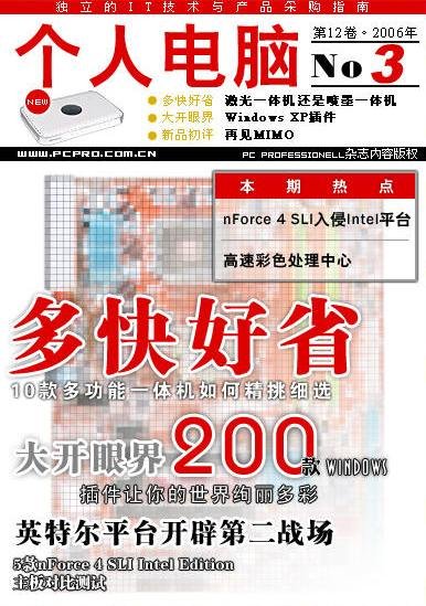 《个人电脑》是创建于1994年的一本IT类杂志,拥有一流的评测实验室和评测手段。《个人电脑》电子杂志是精选了原《个人电脑》杂志的精华部分而制作的flash电子杂志。其中测试数据全部来自《个人电脑》实验室的严谨评测,以帮助读者了解和采购最适合自己的IT产品。