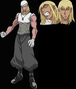 拥有力量和体力的街头格斗者。白天乾体力活,晚上在街上保护没用的同伴。性格单纯。必杀技是百一裂拳。