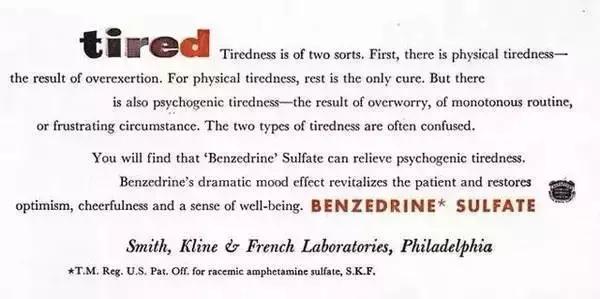 二战后安非他明(商品名Benzedrine,由美国费城的SKF公司销售)