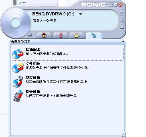 此外,您还可以在 RecordNow! 内启动 Sonic 所提供的一整套数据和视频刻录程序,对计算机进行备份、制作拖放光盘、观看电影、编辑数字视频以及制作自已的 DVD