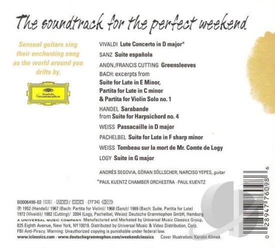 : 01. Antonio Vivaldi:Concerto For Lute, 2 Violins And Continuo In D, RV. 93 - 1. (Allegro Giusto) 02. Antonio Vivaldi:Concerto For Lute, 2 Violins And Continuo In D, RV. 93 - 2. Largo 03. Antonio Vivaldi:Concerto For Lute, 2 Violins And Continuo In D, RV. 93 - 3. Allegro 04. Gaspar Sanz:Suite Espanola - Espanoletas 05. Gaspar Sanz:Suite Espanola - Gallarda Y Villano 06. Gaspar Sanz:Suite Espanola - Danza De Las Hachas 07. Gaspar Sanz:Suite Espanola - Rujero Y Paradetas 08. Gaspar Sanz:Suite Espanola - Zarabanda Al Ayre Espanol 09. Gaspar Sanz:Suite Espanola - Passacalle 10. Gaspar Sanz:Suite Espanola - Folias 11. Gaspar Sanz:Suite Espanola - La Minona De Cataluna 12. Gaspar Sanz:Suite Espanola - Canarios 13. Anonymous:Greensleeves - Version Francis Cutting 14. Johann Sebastian Bach:Suite In E Minor, BWV 996 - Arr. Segovia, Transposed To A Minor - 2. Allemande 15. Johann Sebastian Bach:Partita For Lute In C Minor, BWV 997 - Arr. Guitar Segovia, Transposed To A Minor - Sarabande 16. Johann Sebastian Bach:Partita For Lute In C Minor, BWV 997 - Arr. Guitar Segovia, Transposed To A Minor - Gigue 17. Johann Sebastian Bach:Partita For Violin Solo No. 1 In B Minor, BWV 1002 - Sarabande 18. Johann Sebastian Bach:Partita For Violin Solo No. 1 In B Minor, BWV 1002 - Bourree 19. George Frideric Handel:Suite No. 4 In D Minor For Harpsichord, HWV 437 - Sarabande 20. Silvius Leopold Weiss:Passacaille - Arranged By Goran Sollscher 21. Johann Pachelbel:Suite For Harpsichord In E Minor - Arranged For Guitar By Goran Sollscher - 1. Allemande 22. Johann Pachelbel:Suite For Harpsichord In E Minor - Arranged For Guitar By Goran Sollscher - 2. Courante 23. Johann Pachelbel:Suite For Harpsichord In E Minor - Arranged For Guitar By Goran Sollscher - 3. Sarabande 24. Johann Pachelbel:Suite For Harpsichord In E Minor - Arranged For Guitar By Goran Sollscher - 4. Gigue 25. Silvius Leopold Weiss:Tombeau Sur La Mort De Mr Comte De Logy (1721) - Arranged By Goran Sollscher 26. Johann Anton Logy:Suite - Arranged By Goran Sollscher - 1. Allemande 27. Johann Anton Logy:Suite - Arranged By Goran Sollscher - 2. Courante 28. Johann Anton Logy:Suite - Arranged By Goran Sollscher - 3. Menuet 29. Johann Anton Logy:Suite - Arranged By Goran Sollscher - 4. Gigue