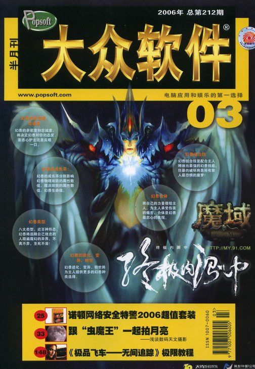 《大众软件》自创刊至今的传统强档栏目,刊登游戏大作攻略精要,为玩家的游戏过程提供及时 有效的帮助,最快、最新、最实用是栏目的一贯宗旨。