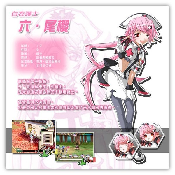 Patch 1.04a更新内容: - Windows vista及7兼容性更新 Patch 1.03c更新内容: - 修正任务「城之防卫」出现的问题 Patch 1.03b更新内容: - 修正部分任务出现的问题 - 修正莉莉丝移动问题 过去更新内容: - 解决部份使用 AMD CPU 玩家所遇到的游戏中断问题 - 解决游戏在 Geforce MX 系列的显示卡上运作时,贴图出错的问题 - 解决 GeForce 系列显示咭开啟平滑处理后不能显示文字的问题 - 解决敌人排序出错的问题 - 解决调较音乐音量后,参考用的音乐没有停掉的问题 - 追加 NeveSetting 更改游戏字型功能 - 追加音乐盒介面 - 追加在战斗中按 Ctrl / Shift 加减速度 - 追加新任务 - 修正在部份电脑出现的游戏中断问题 - 修正部份介面及系统问题 - 修正开啟工作介绍所目录的问题 - 修正不能取消选项的问题 - 修正赠品模式之CG列表 - 修正部份数值 - 修正部份剧情