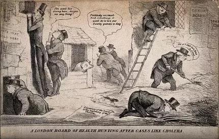 他们认为霍乱是肮脏环境中生成的瘴气,作用于人体引起的。