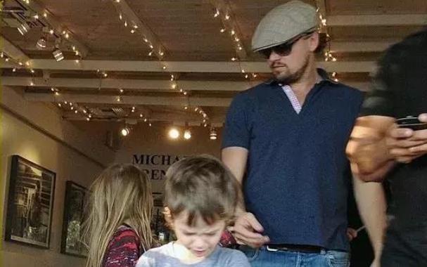 几年前,小李子和托比一家人吃饭,托比有事提前走了,小李子倒还悠闲地和朋友太太、孩子们其乐融融共进午餐,还要顺便帮忙哄孩子。