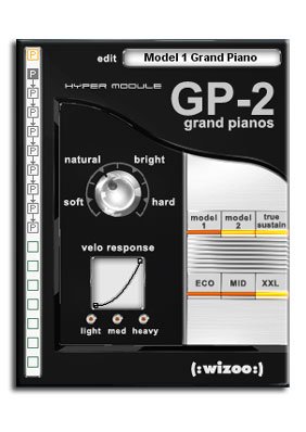 GP-2:(下图)大钢琴音色扩展模块。可调参数:软度、自然度、明亮度、硬度。3种预置力度曲线。