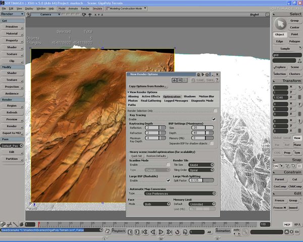 作为全新的Gigapolygon(十亿级多边形)内核的一部分,XSI 5.0的渲染模块具备更高的可伸缩性。面对巨型场景,新的网格划分技术正是保证渲染的高可靠性和高速度的诸多要素之一。