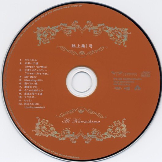 : 1. ガラスの心 2. 未来への道(Hyper”ai”Mix) 3. 天使達のメロディー (Street Live Ver.) 4. My story 5. blessing-祈り- 6. 飛べない鳥 7. 最後の夕日 8. そこから始めよう 9. 永遠と呼べる道 10. サウスポー 11. もっと! - 花王8×4 ’05春編CFソング - 12. 旅立ちの日に…(Instrumental) 本专辑已加入mp3共享计划