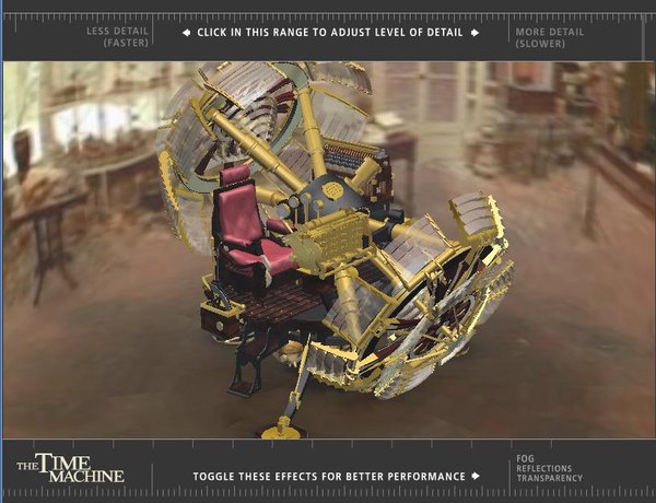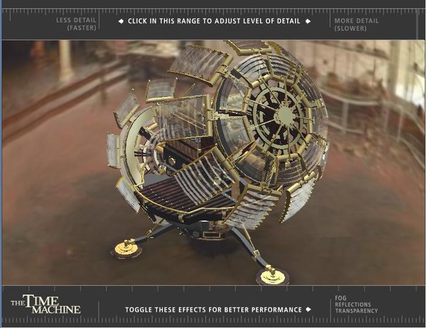 此外,网站还有一个小程序,是用来3D展示那台时间机器的,在这个程序里,我们可以360度全方位仔细观看这台神奇机器的任何一个细节(模型可动)。