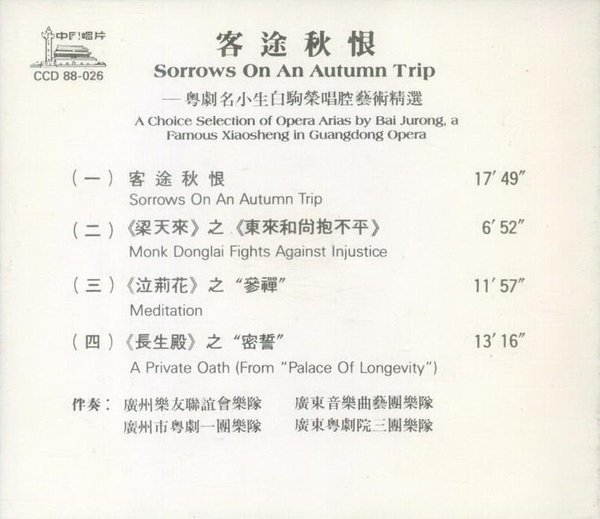 : 01.客途秋恨 Sorrows On An Autumn Trip 02.《梁天来》之《东来和尚抱不平》 Monk Donglai Fights Against Injustice 03.《泣荆花》之“参禪” Meditation 04.《长生殿》之“密誓” A Private Oath From Palace Of Longevity