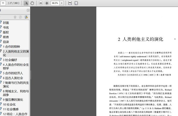: 前言 1 合作的物种 2 人类利他主义的演化 2.1 偏好、信念和约束 2.2 社会偏好与社会困境 2.3 基因、文化、群体和制度 2.4 预览 3 社会偏好 3.1 强互惠的普遍性 3.2 搭便车者瓦解合作 3.3 利他惩罚可以维护合作 3.4 惩罚的效率取决于正当性 3.5 纯粹符号惩罚的效率 3.6 人们惩罚伤害他人者 3.7 社会偏好并不是非理性 3.8 文化和制度也很重要 3.9 群体成员身份对行为的影响 3.10 人们享受合作和惩罚搭便车者的行为 3.11 实验和自然背景下的社会偏好 3.12 相互抗衡的解释 4 人类合作的社会生物学 4.1 内含适应性与人类合作, 4.2 多层选择模型 4.3 均衡选择 4.4 互惠利他 4.5 大群体中的互惠利他, 4.6 声誉:间接互惠 4.7 利他主义作为品性信号 4.8 正向选型 4.9 机制与动机 5 合作的经济人 5.1 俗定理和演化动力学 5.2 不完美公共信息下的俗定理 5.3 私有信息下的俗定理 5.4 演化无关均衡 5.5 社会规范与相关均衡, 5.6 消失的编舞者 6 远古人类社会 6.1 四海为家 6.2 遗传学证据 6.3 史前战争 6.4 社会秩序的基础 6.5 合作的考验 7 制度与行为的共生演化门 7.1 选择性灭绝 7.2 繁殖均整化 7.3 群体间遗传分化 7.4 同类群灭绝和利他主义演化 7.5 澳大利亚实验场 7.6 制度与利他的共生演化 7.7 基因-文化共演化仿真 7.8 均整者与战士 8 局域主义、利他与战争门 8.1 局域利他与战争 8.2 局域性利他与战争的涌现 8.3 仿真与实验中的局域性利他主义 8.4 曾经的“红牙红爪”带给我们的遗产 9 强互惠的演化 9.1 协调惩罚 9.2 真实人口中的利他惩罚 9.3 强互惠的涌现 9.4 为什么协调惩罚能够成功 9.5 分散化社会秩序 10 社会化 10.1 文化传播 10.2 社会化与降低适应性规范的存活 10.3 基因、文化和规范内化 10.4 作为搭车者的内化规范 10.5 降低适应性规范的基因-文化共演化 10.6 内化规范如何成为利他规范? 10.7 可编程的大脑 11 社会情感 11.1 互惠、羞耻与惩罚 11.2 社会情感的演化 11.3 “我们生活的伟大主宰” 12 结论:人类合作及其演化 12.1 人类合作的起源 12.2 合作的未来, 附录 A1 定义利他主义 A2 基于主体的模型 A3 博弈论 A4 动力系统 A5 复制子动态 A6 延续概率和时间折现因子 A7 声誉模型的替代品 A8 公共信号和私有信号下的囚徒困境博弈 A9 学生与非学生的实验被试 A10 Price方程 A11 弱多层选择 A12 群体感应下的合作与惩罚 参考文献 主题索引 作者索引