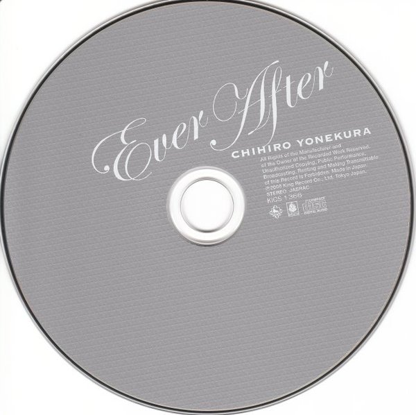 曾经唱过复数经典动漫歌曲的歌手米仓千寻,终于即将发表她的首张动漫歌曲大碟 —— 《Ever After》,预计发售日期为2008年6月25日。 本次发售的这张Album,米仓千寻所属的Kingrecords公司将其过去贩卖的动漫歌曲单曲复数收录,重新编排成一张新的她个人的动漫歌曲大碟,大碟全11曲,音乐风格多变,将曾经的人气歌曲吹入新的气息。尽情感受她那强力而又温柔的气息吧。 米仓千寻が初のアニメソング・カヴァー・アルバムをリリース! アニソンの中から名曲といわれる曲をチョイス。米仓千寻が珠玉の名曲たちを苏らせる。
