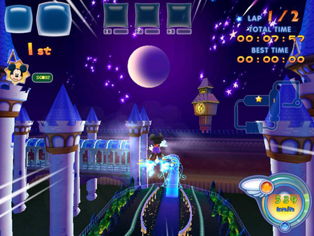 米奇小镇赛道   不同于以往任何竞速类游戏,本款游戏中融合了部分角色扮演的元素和众多酷炫的任务,就像目前流行的大多数RPG一样。不同于普通赛车游戏的选车模式,《迪士尼魔幻飞板》中的高级飞板不是想开就开的,玩家必须通过参加各种比赛获得足够的金币才能购买到。金币的作用不仅只是用来买飞行器,还能给游戏角色添加服饰、购置道具,以显示自己的经济实力和专业能力。玩家还必须不断升级飞板及其各种配件,其性能才能不断提高并获得更佳的状态,这一切更像是在玩一款内嵌了飞行竞速游戏的RPG游戏——练级-赚钱-购买装备-增强武器威力。   此外,《迪士尼魔幻飞板》丰富的任务系统、强大的合成系统、完善的家族系统以及精心设计的玩家成长路线也走出了一条完全有别于其它竞速类游戏的独特道路。   还在跑?我们都飞了!空飘时代,2008跟我们一起飞! 图7   想要史上最丰厚的大礼吗?就快快来参加我们公测的炫热活动吧!   公测炫热活动专题>>>http://dmb.sdo.com/project/gongce/index.asp   公测客户端下载页面>>>http://dmb.sdo.com   官方网站>>>http://dmb.sdo.com   官方论坛>>>http://bbs.dmb.sdo.com/