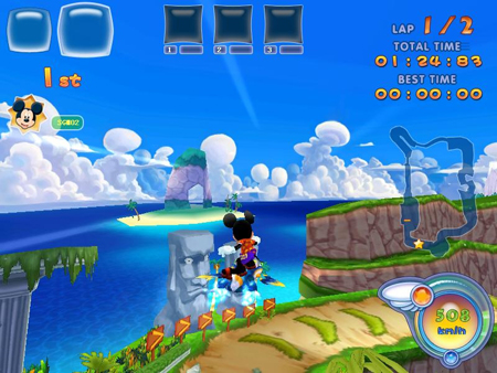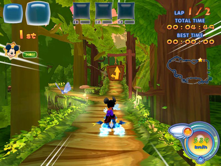 迪士尼明星正在飙飞呢!   《迪士尼魔幻飞板》绝对是一款具有颠覆性的另类竞速游戏,该游戏是迪士尼携手盛大网络历时2年潜心打造的飞行类竞速网游。其独有的迪士尼角色形象和飞行器,是展现个性化的重要手段,各种地图加入了隐藏捷径及机关的设置,更让原本看似简单的竞速游戏增添了难度,也让爱好挑战的玩家有了发挥的余地。   空中飘移---竞速步入“飞主流”