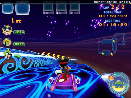 第一款颠覆传统意义上竞速游戏模式的休闲网游   第一款无视地心引力倡导“飞主流”的休闲网游   第一款迪士尼集团推向世界的网游   ......