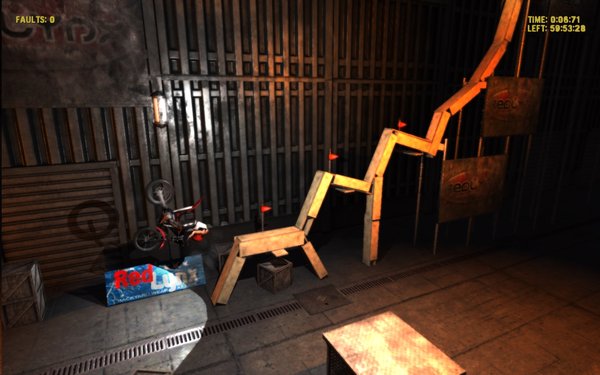 这是一款充分展现摩托特技的游戏,玩家的目标是以最短时间和最少的失误操纵摩托车穿越障碍,并体验到真实的物理效果。游戏共包括训练关1条赛道、easy难度5条赛道、medium难度5条赛道、hard难度5条赛道。操控: W、S为加速刹车,A、D为调整车手重心的前后位置(很重要)。