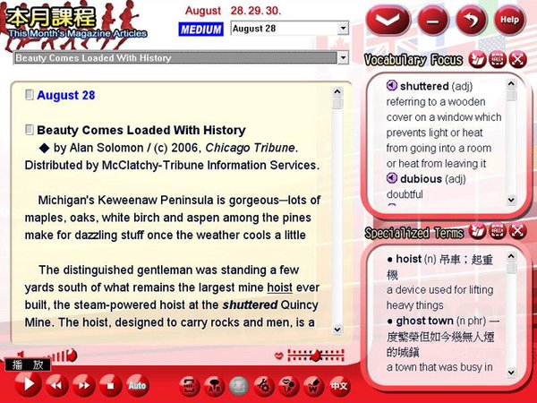 一本精心设计的深度英语学习杂誌,是具备了「空中英语教室」实力之后最佳的进修选择。