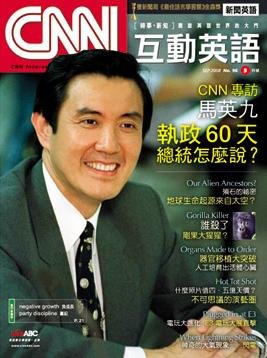 读了本期9月号CNN互动英语 你将会学到: 1. 流行词汇正音班---今年的夏天很艺术! 重要西洋画家的名字你会念吗? 2. 娱乐相关新闻看这里---电玩大进化 、还有值四点五亿天价的照片 3. 财经新闻---都市奇观-油田就在你家旁边、负成长、党纪相关字汇看这里 4. 健康新闻则带你看日本减肥政策奇谈 5. 科学新闻---陨石的祕密,生命的起源来自外太空? 6. 本期CNN专访马英九-谈「马上」60天 7. 谁杀了刚果大猩猩?自然新闻带你一窥真相 8.「器官移植大突破」--人工培育出活体心臟教你科技新闻英语 9.「闪电」--则是让你学会气象及自然新闻英语 10. 趣味新闻-手机电磁波爆米花? 11. 旅游英语新闻-去探访悠閒宜人的挪威首都奥斯陆 Face-to-Face with President Ma NO.96 After Winning the Nation’s Top Office, His Toughest Race Is Just Beginning CNN 专访马英九 谈「马上」六十天 ANJALI RAO, TALKASIA In the colorful yet noisy world of Taiwan politics, new president Ma Ying-jeou is seen not only as a voice of calm, but also this island’s best hope in eight years for a friendly relationship with China. I’m Anjali Rao, this is TalkAsia. 《亚洲名人聊天室》 安海莉.劳乌 在多采多姿但又嘈杂喧闹的台湾政界,新总统马英九不但被视为一个理性的声音,也是台湾八年来与中国建立友好关係的最佳希望。我是安海莉.劳乌,欢迎收看《亚洲名人聊天室》。 President Ma, it’s good to have you back on TalkAsia. When we last met, you were Chairman Ma, now you’re President Ma. Other than the title, what’s changed for you? 马总统,很高兴邀请您回到《亚洲名人聊天室》。上次见面,您还是马主席,现在已是马总统了。除了职衔之外,您的人生还有什么改变呢?