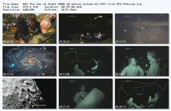 【类型】:科学/记录 【集数】:共1集 【片长】:29分钟 【字幕】:外挂中、英文字幕 【服务器】:随机 【供源状况&分享时间】:非自己供源全天24小时 【内容简介】: Patrick Moore先生在自己的花园里主办了一个秋分派对,与John Mason博士讨论每年此时如何来观看星空。 随着太空站带着身后的儒勒.凡尔纳单元舱在傍晚划过头顶,一轮明月缓缓升起。 John Mason博士介绍如何利用秋季很容易观察到的星座,尤其是仙后座,飞马座和仙女座,去找寻几个有趣的星云、星系和星团。 Sir Patrick Moore hosts an autumn equinox party in his garden and talks to Dr John Mason about what to look for in the night sky at this time of year. As the ISS passes overhead in the early evening with the Jules Verne module behind, there is a bright moon out later. Dr John Mason describes how to find several interesting nebulae, galaxies and star clusters using the constellations that are well seen during autumn, in particular Cassiopeia, Pegasus and Andromeda. 代码 Technical Specs GSpot 2.70a avi file details: ------------------------------ Filename.....: BBC.The.Sky.at.Night.2008.10.Astral.Autumn.WS.PDTV.XviD.MP3.MVGroup.org.avi Filesize.....: 393,479,886 bytes Runtime......: 29:02.040 (43551 frames) Aspect Ratio.: 688x384 (1.792) Video Codec..: XviD ISO MPEG-4 (B-VOP//) Bitstream....: Unpacked Video Bitrate: 1670 kbps Framerate....: 25.000 fps Audio Codec..: 0x0055 MPEG-1 Layer 3 Audio Bitrate: 121kbps 2ch VBR 48000Hz Language.....: English Subtitles....: Yes - English