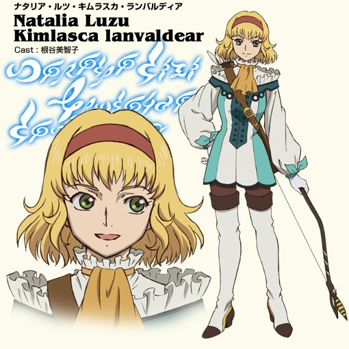 18岁,身高168cm,体重53kg。吉姆拉斯卡·兰巴尔迪亚王国的公主,也是卢克的未婚妻。有着极高的自尊心且自负。但是作为王室的一员,为了救自己的国民而率先展开了战斗。是个称职的王室成员。擅长使用弓箭。作为卢克的未婚妻,她时常责备卢克没有身为王族的觉悟。