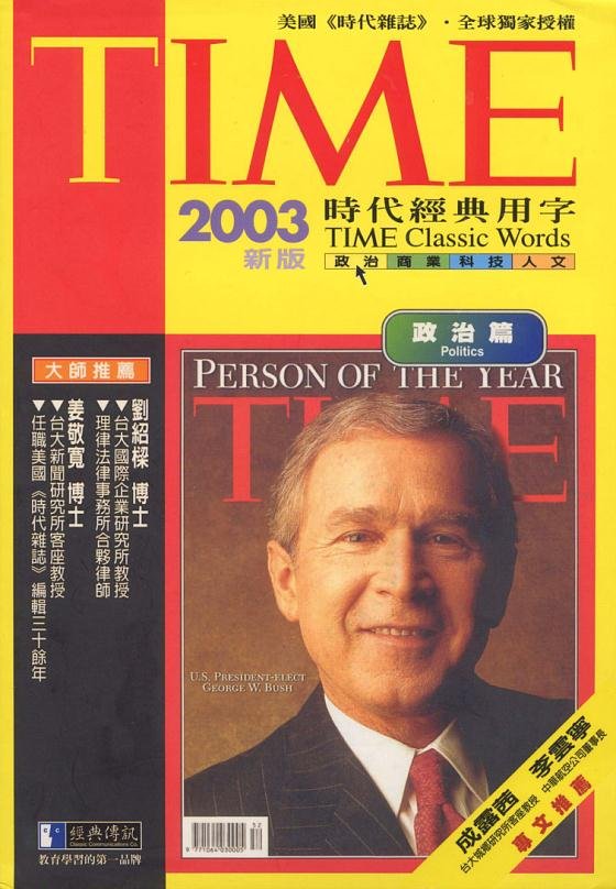 总主笔(二版)序 节选 在《TIME时代经典用字 政治篇》中,粗分为「政治」、「军事」、「法律」三大主题。 在「政治」之下又分为 「政党政治」、「选举」、「政府」、「国际政治」、「经济政策」以及「一般政治」等六项主题。 加上上述的「法律」、「军事」,一共有八项主题,所有精心选出的用字将对读者阅读TIME大有帮助。 在这里要特别说明的是,「经济政策」方面选注的是与政治密切相关的总体经济方面的用字。其余与经济相关的用字则留待《商业篇》详述。 每一则字汇的注解方式,除了说明它的由来、构造、演变以及用法之外,也会提供相关的其它单字以便读者参照。 遇有特殊典故,不论是文学的、历史的、时事的、亦有详尽的解释。 最后附上例句,选自TIME各类文章,以落实 读者了解该字的用法。   除此之外,在每一项主题的结尾,附上一篇《时代杂志》评论(TIME Essay)。 这是《时代杂志》的菁华,也是领导当代文字风格与反应高级知识分子意见的文章,篇篇具有挑战性、启发性。 本书所选出的八篇评论,更是从2000年到2002年的Essay中千挑万选的菁华。 选择的原则在于帮助读者了解该类单字的知识、文化与历史背景,并在实际文章中,让读者欣赏这些一流的评论作家如何使用这类单字。 在阅读文章时,您将在不经意中一再接触TIME的经典用字,进而认识它们、使用它们, 避免过去靠着几个例句死记单字的阅读法,获得更完整的阅读空间来消化这些单字。 当您轻松看完《TIME时代经典用字 政治篇》后, 相信您将具有足够的阅读能力来了解TIME的政治性的文章,充份享受阅读TIME的乐趣,自己来领悟这份西方文化的宝典。 《时代杂志》中文解读版 总主笔 《时代新鲜人》 总主笔 施元祐