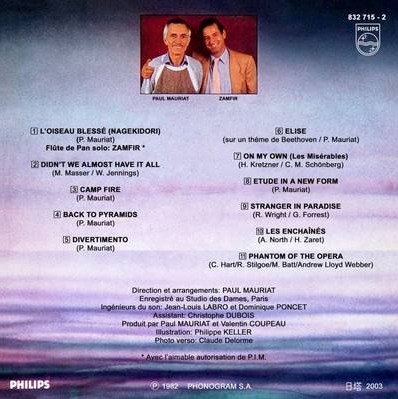 是保罗·莫里哀1987年的一张经典专辑,“The Bird of Wounds”(nagekidori)是与排萧大师赞菲尔(Zamfir)合作的作品(有底页照片为证,嘻嘻)。