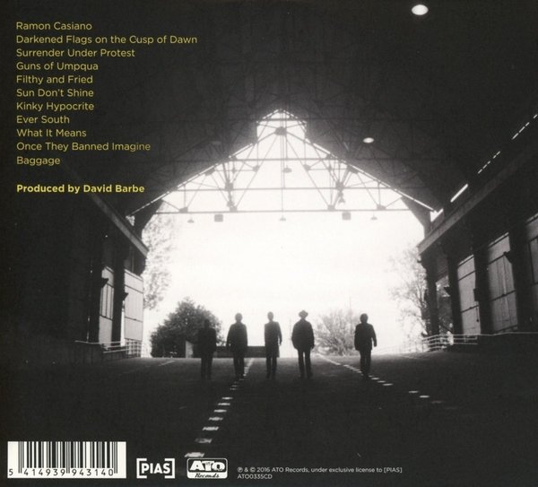 : 1. Ramon Casiano (Mike Cooley) 2. Darkened Flags at the Cusp of Dawn (Patterson Hood) 3. Surrender Under Protest (Cooley) 4. Guns of Upmqua (Hood) 5. Filthy and Fried (Cooley) 6. Sun Don’t Shine (Hood) 7. Kinky Hypocrite (Cooley) 8. Ever South (Hood) 9. What It Means (Hood) 10. Once They Banned Imagine (Cooley) 11. Baggage (Hood)