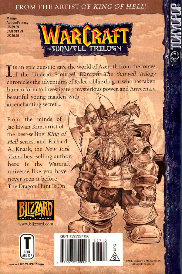 【原著作者】:Richard A. Knaak 【绘画作者】:Jae Hwan Kim 【资源信息】:英文原版:1024×1430单页png 汉化版 :720×1107单页jpg 【内容介绍】: 暴雪娱乐,TOKYOPOP出品。魔兽争霸:太阳之井3部曲[Warcraft: The Sunwell Trilogy]漫画系列第一卷潜龙追杀,176页,售价9.99美元。漫画三部曲将跟随Kalec和Anveena的冒险。Kalec(卡雷苟斯)是一条蓝龙,化作人类外形以躲避想摧毁整个蓝龙种族的力量。Anveena(安薇娜)是有着神秘力量的少女。开始为生存的逃亡逐渐转变成从亡灵天灾手中拯救整个高精灵王国的任务。故事不仅讲述了两人的命运,也解释了关于太阳之井的历史与传说。 角色简介:
