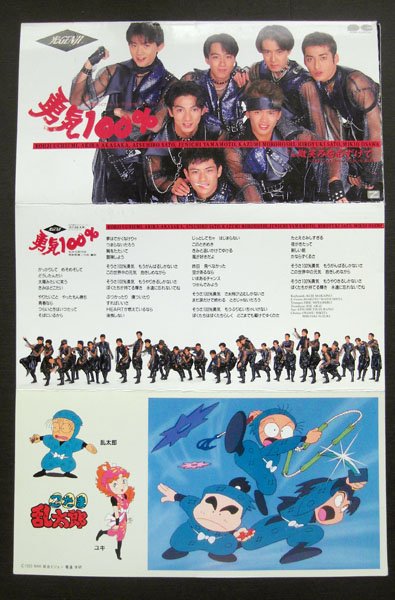 [勇气100%] 有三个版本,都是作为忍者乱太郎的御用主题曲,分别由“Ya-Ya-Yah”、“米米CLUB”和“光GENJI”演唱,其中光“GENJI”演唱的是最初TV版片头曲。