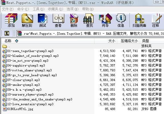 Meat Puppets虽然谈不上大名鼎鼎,但毫无疑问是当代最重要的美国乐队之一,似乎没有任何征兆,Meat Puppets又带来了新作"Sewn Together",Kirkwood兄弟一直保持着良好的创作状态和稳定的发片速度.十二首新歌,最纯粹的Rock,最动人的Country旋律和一以贯之的朋克态度。(转)