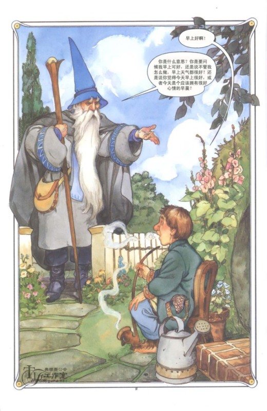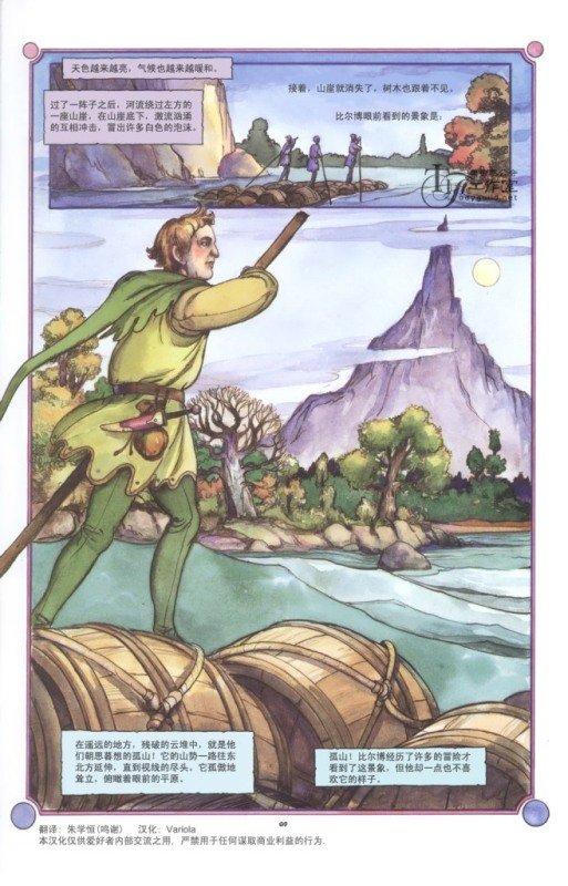 原作:J. R. R. Tolkien 剧本:Charles Dixon 主笔:David T. Wenzel 出版:美国 Eclipse Books    英国 HarperCollins 汉化制作:Variola 翻译:基本采用台湾联经《哈比人历险记》的翻译(鸣谢朱学恒大人~~) 篇幅:基本涵盖The Hobbit小说所有情节,全部134页都已汉化完成,一次发布~~~ 内容简介: 《魔戒》(The Lord of the Rings)的前传,J. R. R. 托尔金的第一部成名作品。 The Hobbit讲述的是比尔博·巴金斯(Bilbo Baggins)的冒险故事,内容或许大家都已经很熟悉。这是一个知足、无甚野心的哈比人,一天被甘道夫(Gandalf)“陷害”加入了一场意想不到的冒险…… The Hobbit的连环画或曰图像小说,绘制发行于1989年,最初分为三卷发行。1990年1月起合为一卷发行,在此之后市场上印刷出售的都是后一种单行本。 1~44页为第一卷,内容是比尔博和矮人一行出发到邂逅咕鲁。