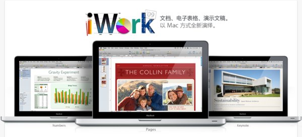iWork,苹果公司推出的高效套装软件, 是制作精美文件、电子表格和幻灯片的最简单的方法。使用 Pages 进行写作和页面排版都非常简单。Numebers 让你能用简单的方法来搞清你的数据。新的电影动画效果,过渡效果,Keynote 中的效果将一直吸引着你的观众。