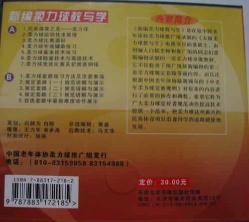 《新编柔力球教与学》是在原中国老年体协柔力球推广组录制的《太极柔力球教与学》电视节目的基础上,由创编人白榕老师和推广组的同志们重新编创录制的一套柔力球录像教材,它不仅收录了推广组最新编创的第三套柔力球规定套路等新内容,而且还根据中国老年体协最新频布的《中老年柔力球竞赛规则》对原来的内容进行了必要的修改和调整,希望它将为广大柔力球爱好者规范动作提高技术提供一个范本,使柔力球这项新兴的体育项目沿着科学的道路健康地发展。