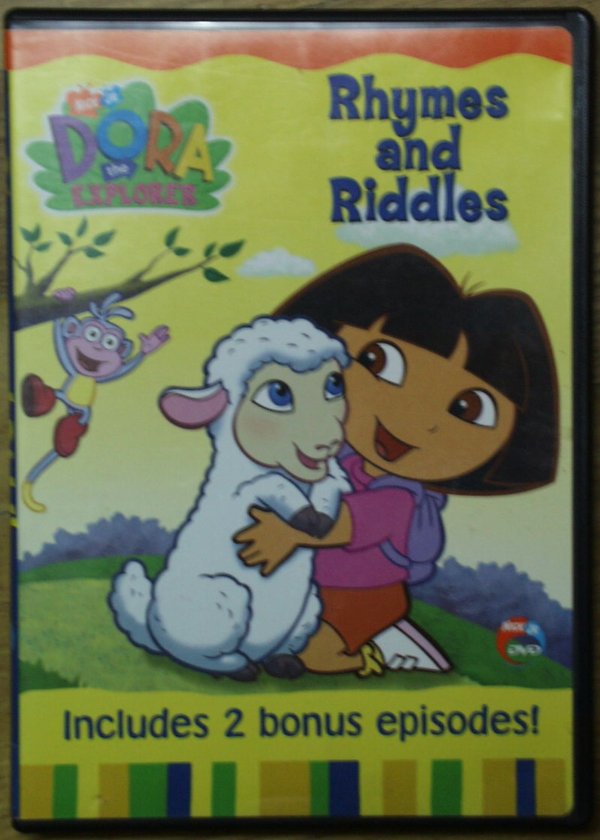 In DORA THE EXPLORER: RHYMES AND RIDDLES, Dora and Boots find plenty of learning-filled adventure when they attempt to solve the silliest riddles in two new episodes: "Dora Had a Little Lamb" and "Call Me Mr. Riddles." The two additional episodes are "Backpack" and "Big River."