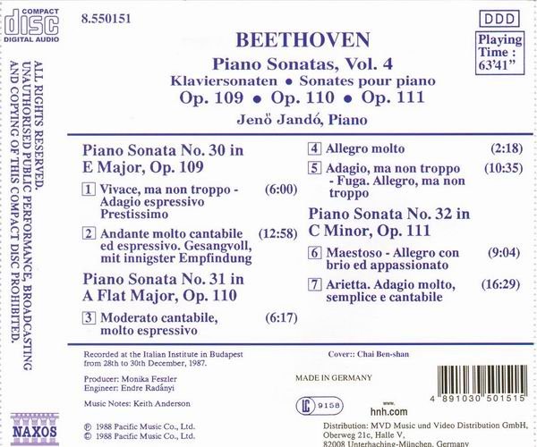 Jeno Jando -扬多:贝多芬最后三首钢琴奏鸣曲 Beethoven Piano Sonatas Vol.4 Naxos[FLAC]