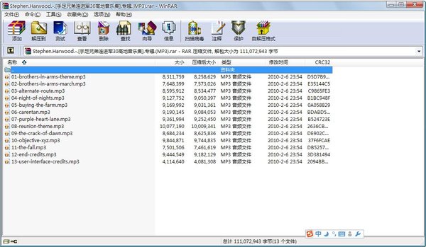 以下是作曲家和此专辑的介绍(不好意思只有英文): In 2005, the World War II shooter was a somewhat of a crossroads. The franchise that put this sub-genre on the map, MEDAL OF HONOR, had started to wane a bit. After four solid efforts along with their associated expansion packs, the series moved to the Pacific theatre but found gaming-seas much rougher than the terrains of Western Europe. Gamers had migrated over to the CALL OF DUTY franchise, which, by 2004, had established itself as the new king of this brand of first-person-shooter games. Then, just as CALL OF DUTY was beginning its own momentary down-turn, along came a upstart franchise from developers, GEARBOX. Their first entry of the fledgling franchise, BROTHERS IN ARMS: ROAD TO HILL 30, would bring an even higher reality to the World War II gaming experience. Squad based tactics and missions with even greater historical accuracy were the foundations of this new shooter. The BROTHERS IN ARMS series would make its initial landing on the platform-beaches of the PC, Playstation 2, and Xbox, going head to head with the two established powers in the industry and helming the pen and baton for the first wave was composer STEPHEN HARWOOD, JR. What made the MEDAL OF HONOR and CALL OF DUTY games so successful, at least in part, were their engaging storylines, the attention to detail, and the segments of history that were gleaned while playing through. BROTHERS IN ARMS: ROAD TO HILL 30 also makes the most of these same elements but pushes them to a new level; thereby, making room for itself in a sub-genre of gaming that was well monopolized by the other two franchises. What also separated the game from its competition was its intuitive command system. This was no "run and gun" gameplay. Specific squad based tactics had to be employed to successfully accomplish each mission - giving the player a much different experience than they may have been used to. In the first-game of this franchise, gamers get to play missions of the 502nd Parachute Infantry from the famed 101st Airborne Division in all of its heroically brutal and unsanitized reality. The feel of the game is essentially a game-version of the popular mini-series, BAND OF BROTHERS. Although we follow the victories and defeats of a different regiment, the emotional experience and gritty reality is similar...even down to the musical experience. For BROTHERS IN ARMS: ROAD TO HILL 30, STEPHEN HARWOOD, JR. had a unique challenge; one more akin to scoring for television or film. It is also another distinguishing element for the BROTHERS IN ARMS franchise - the absence of gameplay music. In other words, as you are actually engaged in fighting, maneuvering your squads etc. there is no music. The only music found in the game is at the menu, cutscenes and credits. The omission of music during gameplay was done intentionally to make the experience, again, truer to the actual experience. It worked well enough for the film, SAVING PRIVATE RYAN and the mini-series, BAND OF BROTHERS, which are both significant influences on the game. The influence of those two seminal projects also carries over to STEPHEN HARWOOD JR.'s score. BROTHERS IN ARMS: ROAD TO HILL 30 is easily divided up into two types of cues. We have a good number of emotional, melodic cues that keep the tone of the game in a the reverential vein, but to balance this out, we have cues representing the action/suspense elements of the game's cutscenes. While, the overall experience is somewhat abbreviated, the included tracks in Sumthin' Else Digital's release is satisfying enough. To start, Harwood delivers a strong title march. With its inspirational melody played honorably by brass, the undergirding of snare drums, it could be said that this title theme is a bit formulaic...but then upon completing the track you are quite satisfied that there is genuine inspiration here. Track 1 "Brothers in Arms March" builds, layer upon layer, until it reaches a triumphant conclusion. We get this same inspirational theme playing over the main menu of the game...placing in a somewhat more sober mindset than the average gamer might be accustomed to. While this title theme serves as the backbone of the score, HARWOOD offers several other hymn-like pieces that could easily stand on their own as title themes: "Brothers In Arms Theme" (2), "Reunion Theme" (5) and "Purple Heart Lane" (7) all capture and convey a somewhat nostalgic feeling honor, patriotism and heroism; sometimes quoting elements of structure and tone from the title theme and at others employing with varying degrees of alteration. The overall effect gives Harwood's score a specific "oneness" without becoming too tiresome. Of course, following the story of Sergeant Matt Baker and his compatriots of the 101st Airborne through their campaign in France means there is plenty of action, suspense and drama. The cutscenes go the extra-mile to capture such feeling and HARWOOD's score is more than just a small part of this. STEPHEN HARWOOD JR. relies heavily on runs of brass and strings. Timpanis roll and snares flare, putting the listener seemingly right in harms way. In "Night of Nights" (4) we hear an interesting element carried into most of the other action/suspense pieces - a specific motif knocked out on glockenspiel or some close cousin. It is a surprisingly bright bit of instrumentation amidst the pounding and blaring. At the most intense moments of the score, we hear full symphonic accents that feel like orchestral mortar blasts. While "Objective XYZ" (6) begins darkly and brooding it also moves into an action evoking memories of the late-great Jerry Goldsmith. It is in the climactic action pieces that the ROAD TO HILL 30 starts to feel like some of its FPS cousins from the MEDAL OF HONOR series. BROTHERS IN ARMS: ROAD TO HILL 30 has been able to carve out a place for itself in gamedom. Fans, critics, and even WWII Veterans have all expressed their approval. The choice to leave a