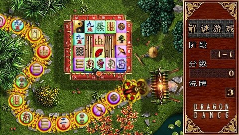 日本SUCCESS代理发行,AlwaysNeat制作,预定2009年春季在PSP以及NDS两个掌机平台上推出麻将益智游戏:《龙之舞》(Dragon Dance)。目前本作的官方网站已正式开通,并且放出了游戏最新画面与信息,供各位玩家参考。 在这款《龙之舞》(Dragon Dance)新作的玩法和著名益智类游戏《连连看》相类似。玩家首先要看清龙背上所显示的麻将牌是什么,然后在中间的麻将堆上从上至下依次找到与龙背上相同的麻将牌,通过点击来消除龙背上的麻将牌,从而阻止龙到达门内。此外还有让玩家将跟龙身上的图案没有关系的相同的两张图案的牌给不断消去的“Pair March”模式。另外当玩家在关卡闯关的时候,还会有例如像是宾果游戏等等的奖励小游戏也会跟着登场的。 新作《龙之舞》除基本模式外,当玩家在一定时间内连续将牌给消去所产生的Combo连锁数或是消去所有的牌的时间等等满足特定条件的话都会出现特别的奖励,当玩家获得全部的奖励时,还可以开启本作中难度最高的“Extra”模式来挑战! 在PSP版《龙之舞》中,玩家可以选择普通对战或者玩棋局,尽自己的力量去击败对手。游戏除了可以设定对战等级外,还可通过 Ad Hoc 模式(无线模式)以及 Game Sharing(游戏分享)实现两名以上玩家联机对战。游戏的PSP版目前预定2009年2月26日发售,游戏售价为3,990日元(含税价),喜欢棋类游戏的玩家不可错过本作。