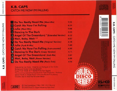 K.B.Caps 原名Cay Hume. 个人资料不详. 其作品多被其它各舞曲专辑收录. 而大家熟悉的荷东也收录了单曲"Do You Really Need Me". Various Artists -《The Best Of One Night In Hollywood East》(荷东)限量版[APE]. 本专辑为俄罗斯出版. 24 Bit 重新灌录.