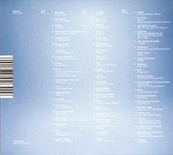 01.808 State - Pacific State 02.The Beloved - Sun Rising 03.Leftfield - Original 04.Primal Scream & Denise Johnson - Don't Fight It, Feel It 05.Sneaker Pimps - Underground 06.Groove Armada - At The River 07.St Germain - Dub Experience II 08.A Man Called Adam - Barefoot In The Head 09.Moloko - Sing It Back 10.Kinobe - Slip Into Something More Comfortable 11.Rae and Christian feat. Veba - Spellbound 12.Aim - Cold Water Music 13.Ballistic Brothers - Blacker 14.Mr Scruff - Get A Move On 15.Cut La Roc - New York Pimp 16.Kruder and Dorfmeister - Black Baby 17.World Party - Is It Too Late (Peter Lorimer Mix) 18.The Prodigy - 3 Kilos 19.Olive - You're Not Alone (Nightmares on Wax Mix) 20.Deadly Avenger - We Took Pelham