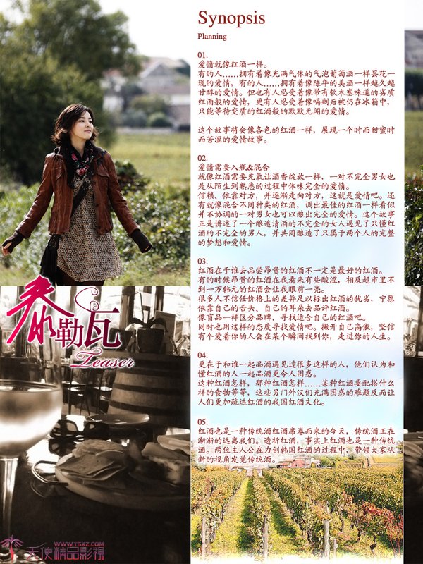 【剧情简介 】《泰勒瓦》以葡萄酒餐厅“泰勒瓦”为背景,通过主人公们的纠葛、浪漫爱情和梦想将葡萄酒的历史和传统,背景和制作过程等透过多个不同的视角再现.总制作费超过60亿韩元(约合4000万人民币)的《泰勒瓦》是经过两年的酝酿而诞生的大作电视剧。