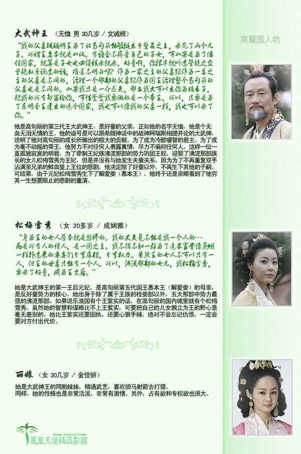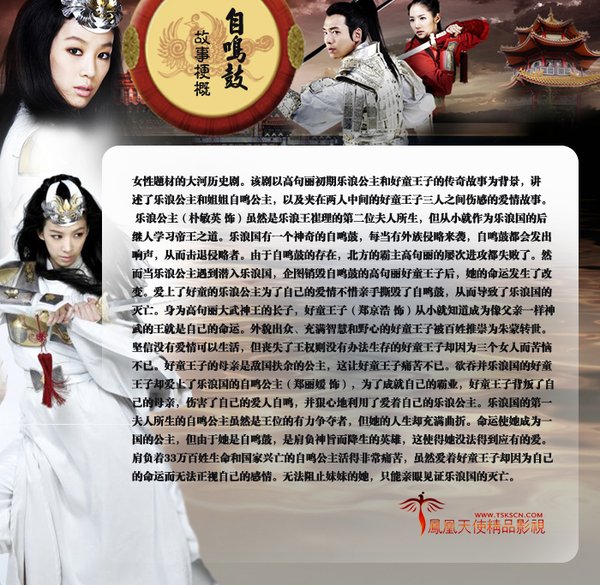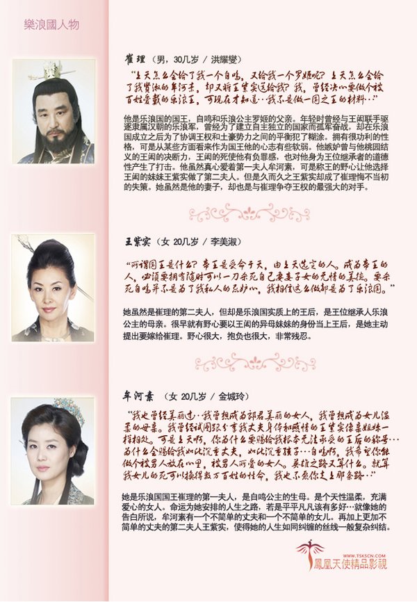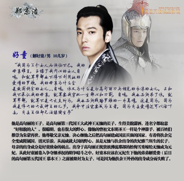 【剧情简介 】以高句丽初期的乐浪公主和好童王子的传奇故事为背景制作的戏说古装剧,并且这是一部描写了乐浪公主和其姐姐自鸣公主还有夹在二人中间的好童王子的三角关系的大型古装剧.