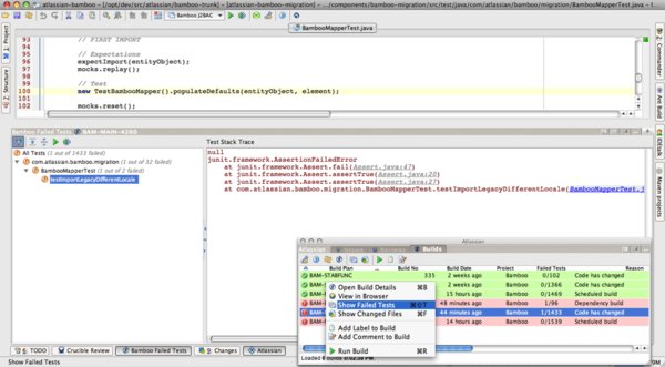 Build失败被显示为高亮并容易访问 - 测试结果被解析并保存到Bamboo 里;
