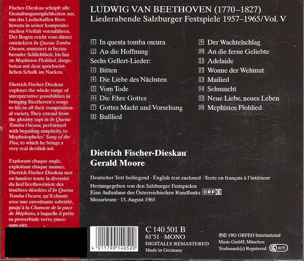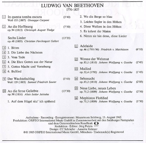 费舍·迪斯考 Dietrich Fischer-Dieskau -萨尔兹堡音乐节之“贝多芬艺术歌曲” Beethoven: Songs Orfeo[FLAC]