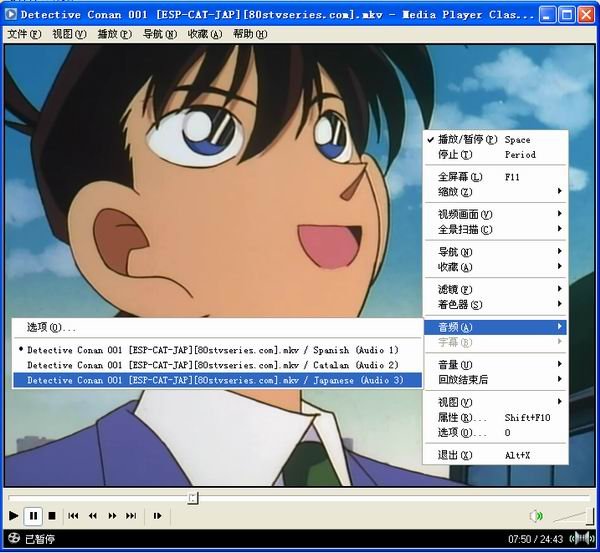 播放时鼠标右键-音频-选择如图