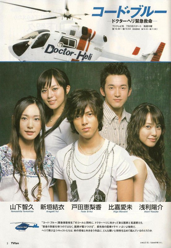 】: 描画2008年夏天,乘着医疗直升机,在那里奋战的年轻的飞行医生候补生和指导医生们,在载送患者的途中实行急救的“flight doctor” 的实习生们的奋斗故事。   讲述了乘坐着装载有医疗设备的直升机,对运送中的患者进行治疗的飞行实习医生们的奋斗故事。   故事以运用直升机的最新医疗现场为舞台,描写了飞行员医生实习生和指导医师。摄制预定用真实的直升机,山下将成为从直升机上跳出医生。直升机医生是指和需要紧急治疗的患者一起,通过运用搭载医疗设备的直升机,医生、护士赶到现场开始治疗的最终的医师输送系统。   去年6月,目标将直升机分配到全国的特别措施法案被决定,电视剧及时反映了这一社会形势的内容。剧中演员将实际乘坐直升机 ,既有实施治疗紧张的场景 ,又有山下在直升机中逼真的演技。作为演员 ,更是一个提升的作品。制作人増本淳表示对本作具有很大的信心「本剧聚集了一批具有压倒性人气的年轻演员阵容 ,将“飞行医师”这一最新的医疗主体以连续剧的形式真实表现出来。以天空作为生命的前线基地 ,将为了拯救生命的年轻医师们的奋斗模样以及急救现场的紧迫感以影像的形式传递出来」。   与山下所扮演飞行医师候补生蓝泽耕作一起出演的有新垣结衣(19)、户田恵梨香(19)、比嘉爱未(21)、浅利阳介(20)等一批当今当红的人气演员。