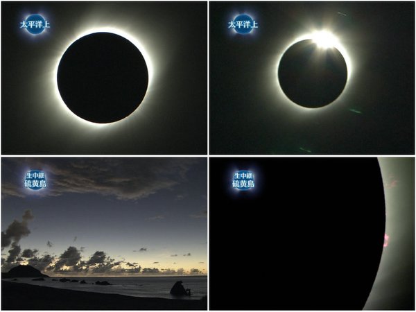 NHK在四个观测点(屋久岛、恶石岛、硫黄岛与太平洋的邮轮“太平洋维纳斯”号上)直播这次日全食。邮轮两天前在横滨港出发前往太平洋水域,近日全食中心点观看。