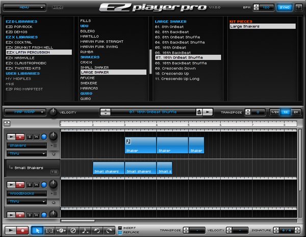 强大的 MIDI库drag and drop(拖放)功能让用户最少只点击5下鼠标键就能创造出强大的套鼓结合和音色。