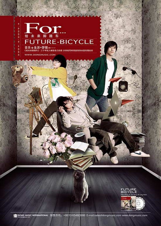 这不是一张送给傲慢的专辑,也不送给偏见,不送给噪音,不送给愤怒,不送给盲从和嫉妒,不送给从不会怀念的麻木。简洁清新的歌声,细细雕琢的编曲,追求创意与自由的他们营造出自己的现代音乐气质。《给未来脚踏车》,2009年东乐制作出版,是三个年轻人献给自己的歌,分享给同样渴望保持本真性情的人。不得不说,这是一张难得的专辑,阳光、正气。在以另类博出位的流行乐坛,牙疼一样的无病呻吟肆无忌惮地折磨大众的耳膜和神经,而《给未来脚踏车》里却听不到一丝矫情。专辑从诞生到发行,整整四年时间。四年有多远,足够卡尔维诺的男爵在树上走遍欧洲大陆,足够达?芬奇画完《丽达与天鹅》,足够斯皮塔勒彗星从宇宙深处飞抵太阳系,足够怀里的婴孩长成舔着手指跑来跑去的小小美女。这样漫长的四年,“未来脚踏车”从初出茅庐的三个小伙子变成平和内敛的年轻人,用四年时间来小心翼翼地呵护梦想,默默地写歌,平静地生活,执着于心里小小的愿望。“未来脚踏车”,也许现在还只是一个名字而已,对固执守护自己15平米小房间内精彩世界的人们来说,它将慢慢变成一种简约而单纯的生活方式。